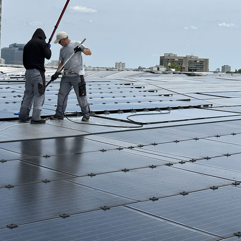ИЛВА ПРО разполага с екип от висококвалифицирани служители, които имат голям опит и са в състояние да предоставят правилните решения за вашите изисквания за почистване на прозорци и витрини. Винаги осигуряваме безупречна прозрачност и блестящ вид. Това може да стане както благодарение на стъклочистачка с произведена от нас висококачествена гума, така и с водна струя под налягане или с иновативна осмозна система и телескопична четка.